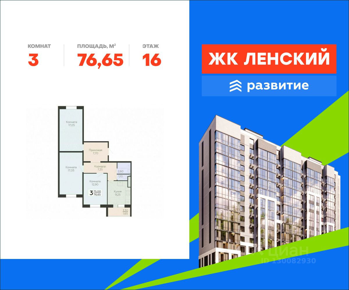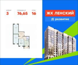 В продаже квартира площадью 76.65 кв. м с отделкой на 16 этаже 16 этажного дома. Квартира находится в 4835 корпусе. Жилой комплекс "Ленский" - место, где встречаются природа и городская среда, а умиротворение загородной жизни сочетается с комфортом. Проект располагается на северо-востоке Санкт-Петербурга, в Южном микрорайоне Всеволожска, в 16 км от КАД, с удобным выездом на Колтужское шоссе и Дорогу Жизни. В его состав входят два 18-этажных корпуса с видами на Колтушские высоты, сервисы повседневной инфраструктуры, собственный приватный двор, просторный паркинг для жителей и гостей. Девелопер проекта - ГК "Развитие". Транспортная доступность На автомобиле: • 30 мин до станции метро "ул. Дыбенко" • 35 мин до центра Санкт-Петербурга Архитектура Архитектурный облик отличается современным дизайном. Панорамные окна с большой площадью остекления наполняют квартиры светом, актуальная финская технология Peikko защищает квартиры от промерзания даже в северном климате. Дома прочные, долговечные, их конструкция гарантирует тёплый микроклимат зимой, прохладу летом и отличную звукоизоляцию. Планировочные решения Функциональные планировки отличаются простотой и эргономичностью, пространство эффективно используется даже на небольшой площади. К кухне примыкает просторная лоджия с панорамным остеклением, во всех двух- и трехкомнатных квартирах - по два санузла. Все квартиры сдаются с отделкой white box, которая позволяет существенно сократить стоимость и сроки ремонта. По желанию доступны варианты чистовой отделки под ключ: "комфорт" и "бизнес" с использованием современных материалов. Благоустройство - приватный двор без машин; - всесезонное озеленение; - спортивный корт для футбола и баскетбола; - детские площадки с мягким покрытием; - площадка для настольного тенниса; - скамейки и беседки для отдыха по всему периметру; - прогулочные и велосипедные дорожки в тени деревьев; - сквозные парадные с большими окнами; - просторная входная группа на уровне земли; - колясочные помещения; - торговая галерея в шаговой доступности. Окружение - 5 парков: заповедник "Колтушские высоты", парк "Софиевка", "Румболовский", "Кенша", Державинский и Алексеевский парки. За 5-10 минут можно добраться транспортом до Песчанки и Петропавловского парка. Ковалевский лесопарк выделяется прекрасными экотропами, зонами для пикников и велодорожками, а Ждановские озера - благоустроенными пляжами; - рядом Колтушинский фреш-маркет с фермерскими продуктами и крупный ТЦ "Юбилейный", где работают более 70 магазинов, кинотеатр и фуд-корт; - 10 детских садов, начальная и средняя школы, центры дополнительного образования, творческие секции; - в ближайшей доступности фитнес-центры, бассейн, теннисный клуб и даже центр верховой езды; - культурные и знаковые места: Музей-усадьба "Приютино", музей "Дом Авиаторов", мемориальный комплекс "Дорога Жизни", многочисленные пешеходные маршруты.