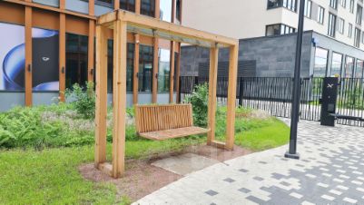 Студия расположена в ЖК бизнес-класса GlоrаХ Заневский. На территории комплекса есть прогулочный бульвар, детская площадка, коворкинг, лаунж-зона, пункты "Ozon" и"Wildeberris".