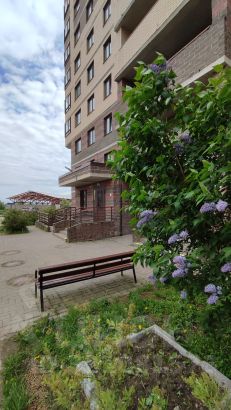 На балконе установлен стеллаж. На площадке 5 квартир. В доме 3 лифта. Территория за шлагбаумами (3шт). Есть подземный паркинг. Возле дома всегда есть место для паркинга. Шум от Пулковского шоссе закрывает первая секция дома. На Пулковском шоссе открылась новая остановка общественного транспорта - прямо возле дома. В районе новая школа, несколько детских садиков. Один взрослый собственник.