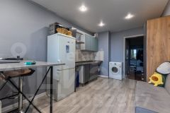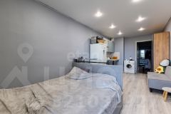 В квартире выполнен ремонт, в красивой цветовой гамме . При продаже останется Кухонный гарнитур с встроенной техникой , холодильник, стиральная машина, кровать и корпусная мебель в комнате. Совмещенный санузел оформлен в современном стиле.