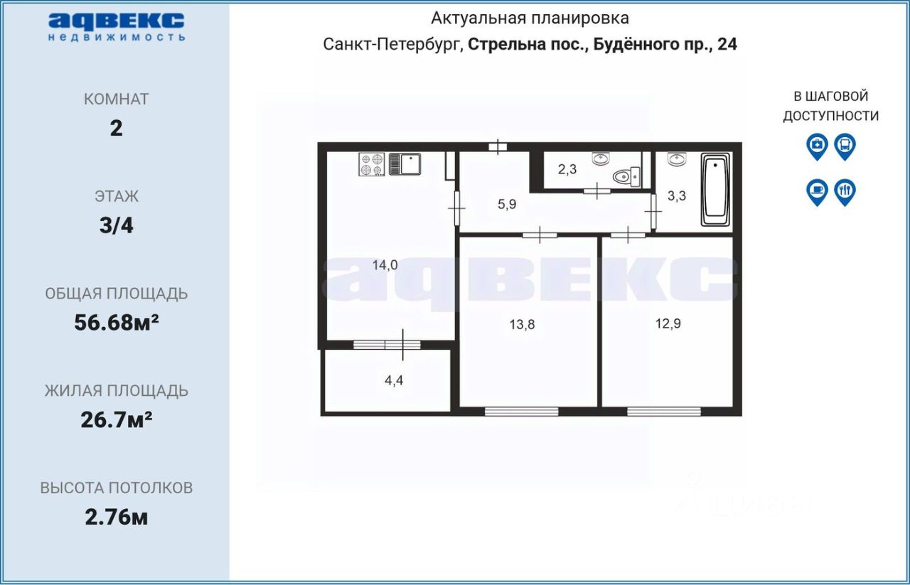 Продается просторная 2-х комнатная квартира в малоэтажном жилом комплексе с чистовой отделкой. Комнаты изолированные. Кухня 14 м2 с выходом на застекленную лоджию. В квартире запланированы специальные места для установки гардеробных. Высотой потолков 2,76 метра. В доме на первом этаже есть места для хранения колясок и велосипедов, а также предусмотрены кладовые помещения для хранения сезонных вещей. Все дома комплекса спроектированы в неоклассическом стиле. Фасады выполнены в песочно-бежевых тонах. В холлах выполнена единая дизайнерская отделка, соответствующая общему стилю микрорайона.