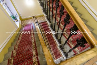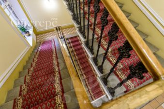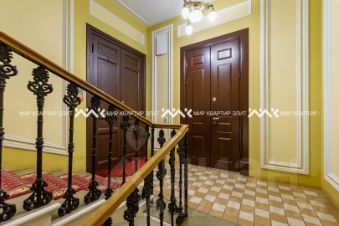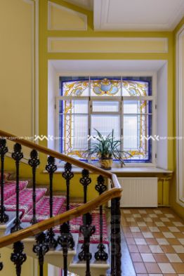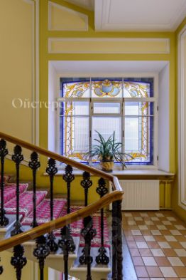 Изысканная отреставрированная парадная, с красной ковровой дорожкой и неповторимыми материалами отделки: витражи - произведения искусства, выполненные мастерами стекольной живописи по старинной технологии, исторические двери, поручни и ажурные литые балясины.