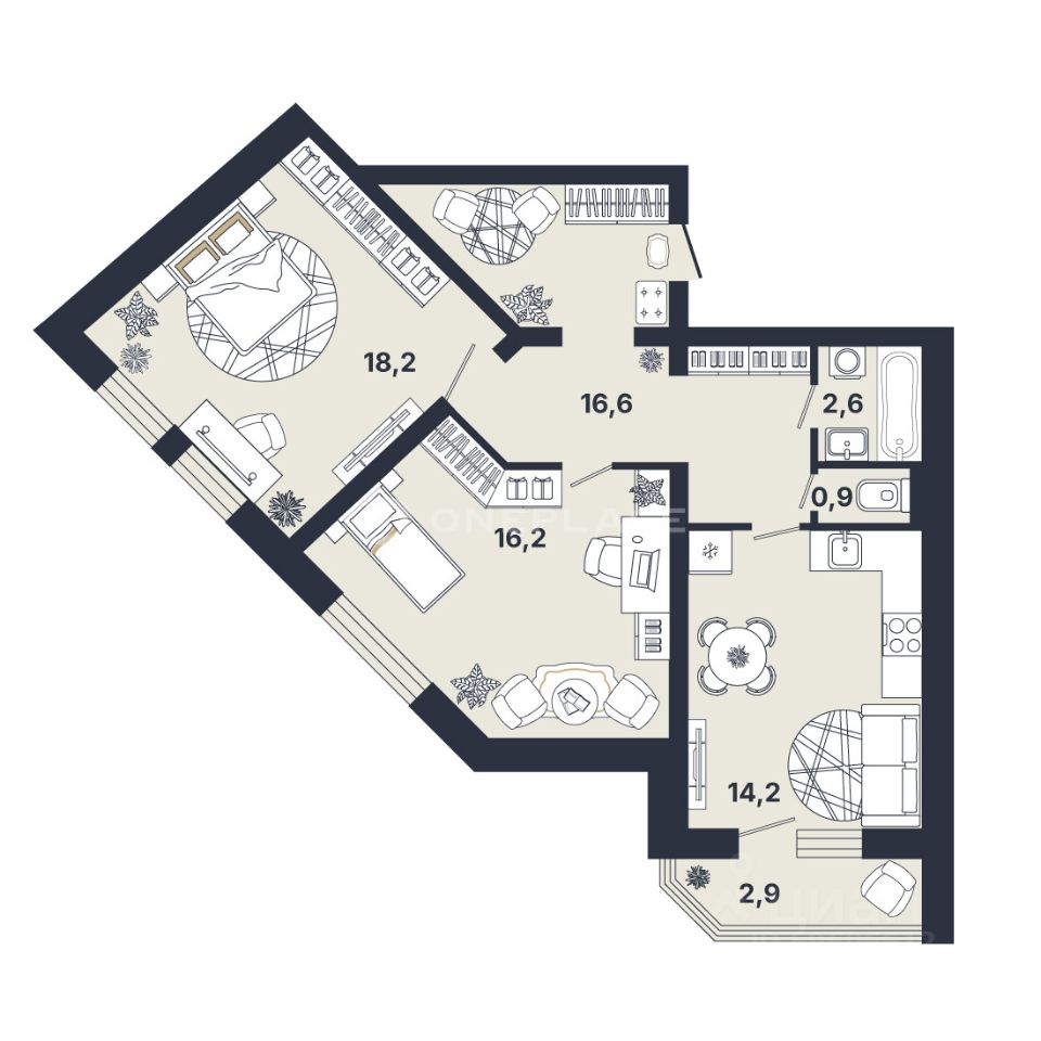 Светлая двухкомнатная квартира в зеленом районе Санкт-Петербурга