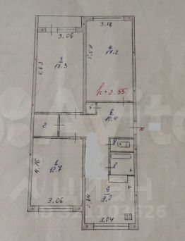 * комнаты все изолированы- 17.2 кв.м, 17.3 кв.м ( с выходом на остекленный балкон ) , 12.7 кв.м;