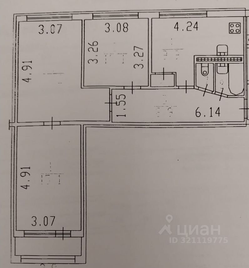 Раздельный санузел. Заменены трубы, установлены счётчики.