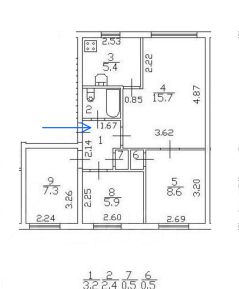 -Две комнаты изолированные 7.3+5.9 м2, гостиная проходная 15.7 м2, четвертная комната 8.6 м2