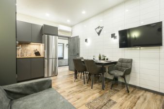 В апартаментах выполнен качественный и продуманный ремонт для полноценного постоянного проживания семьи 2 взр+ 2 ребенка , вся необходимая техника и даже больше. ТВ, Сплит системы (2 кондиционера), теплые полы и тд.