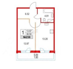 О квартире (13-й этаж, общая площадь 38.5 м²):