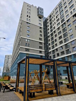 - На территории комплекса находятся детская площадка, школа и детский сад.