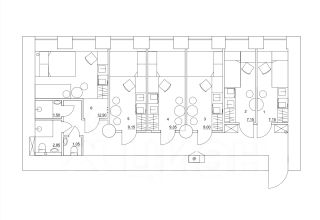 Квартира разделена на 6 отдельных студий, что максимизирует ваш арендный доход. При этом, все мокрые точки сохранены!