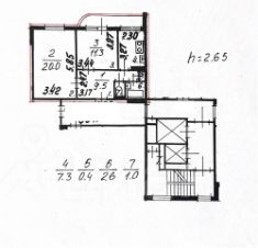Санузел раздельный - туалет 1 метр, ванная 2,6 метра.