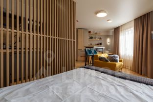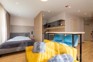 Общая площадь студии - 35.6 кв м. Находится на 9 этаже с панорамным видом на город. Дизайнерский ремонт. Функциональное зонированное пространство: спальная зона и оборудованная кухня со встроенной техникой (посудомоечная машина, холодильник, варочная панель, вытяжка), рабочая зона и гостиная с передвижной барной стойкой. Диван в гостиной раскладывается, под кроватью есть доп место для хранения вещей. СУ совмещенный, большая душевая, стиральная машина. В коридоре вместительный шкаф для хранения одежды. Два больших окна, что дает много света. Вся мебель и техника входит в стоимость и останется новому собственнику! Квартира не требует дополнительных вложений и времени на ремонт. Въезжай и живи или сдавай.