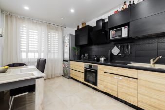 В квартире выполнен качественный ремонт. Вся встроенная мебель остается новому собственнику. У квартиры эргономичная планировка в форме распашонки. Окна выходят на две стороны. Стеклопакеты от застройщика поменяны на современные энергосберегающие. Большой, просторный коридор с нишей под гардеробную. Раздельный санузел. Две изолированные комнаты. Вместительная кухня правильной формы с выходом на балкон. Сделан теплый пол в коридоре и на кухне. Комфортный 4-ый этаж. Есть колясочная на этаже, которую в настоящий момент используется под габаритные вещи (коляски, санки, снегоходы и тд). Также есть колясочная в каждой парадной.