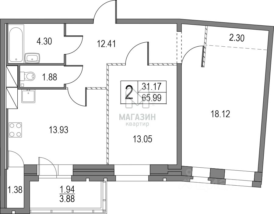 Комнаты: 13.05 м², 18.12 м²(все изолированные)