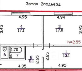 Редкая планировка: Огромные изолированные комнаты (17.1, 17 и 14.2 м²) предоставляют максимум приватности для всех членов семьи.