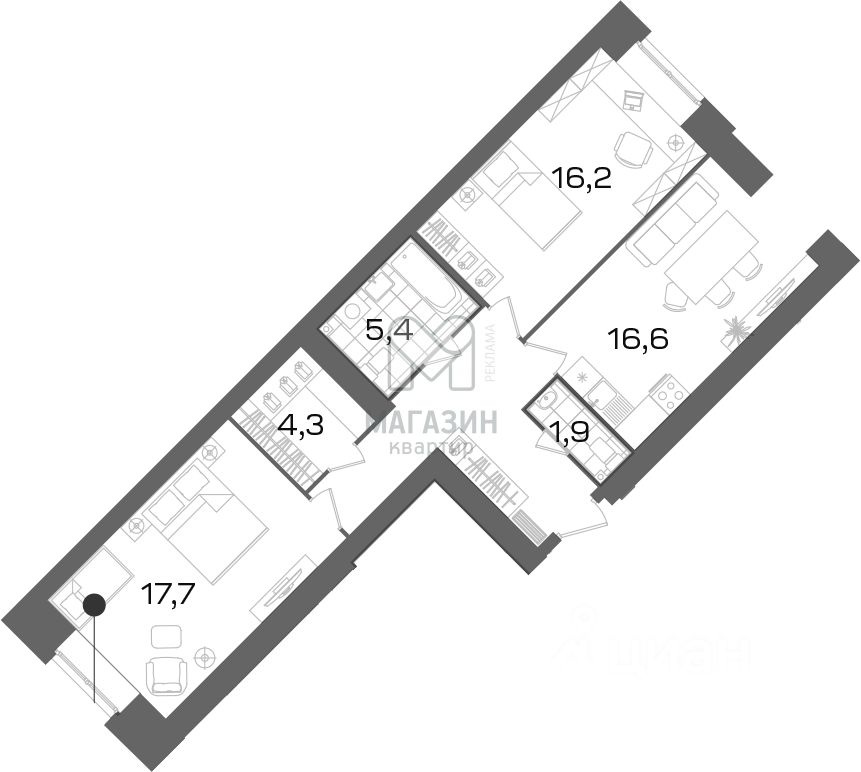 • С/у совмещенный 5.4 м², дополнительный с/у-1.9 м²