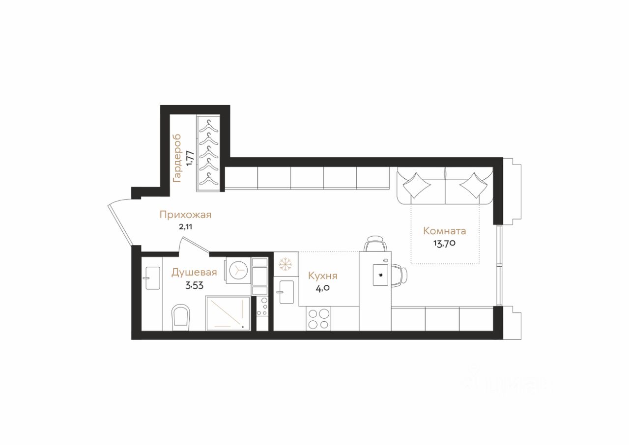 Площадь жилая: 17,7 кв. м.
