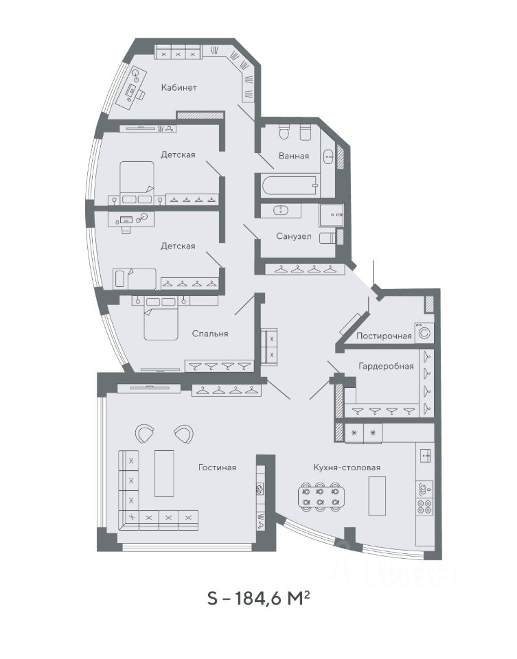 РОСКОШЬ И ПРОСТРАНСТВО ДЛЯ ВАС И ВАШЕЙ СЕМЬИ (184,6 м²): Квартира с продуманной до мелочей планировкой идеально подойдет для большой семьи: