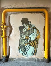 * В арке, на стене, репродукция картины австрийского художника Эгона Шиле - Эдит и маленький племянник (1915), написанная петербургской художницей.