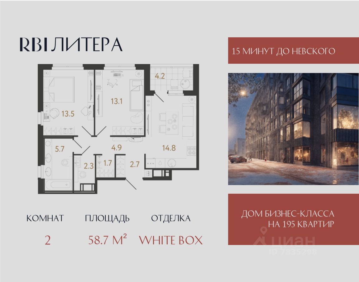 Клубный дом "Литера" от RBI. Новая "Литера" вашей жизни Камерный проект бизнес-класса на 195 квартир строится в 6 минутах от метро "Елизаровская" в непосредственной близости от исторического и делового центра Петербурга. Дом располагается в 700 м от набережной Невы по Большому Смоленскому проспекту: встречать рассветы и провожать закаты, наслаждаясь захватывающей панорамой города и зелёным окружением Невского района, можно из окон собственной квартиры! До Московского вокзала и центральной части Невского проспекта — 15 минут с учётом пешей прогулки до "Елизаровской" от дома. Добраться на автомобиле можно за то же время. До аэропорта "Пулково" 23 км. Дом состоит из двух 12-этажных секций, которые располагаются друг напротив друга, и ещё двух 8-этажных. Вместе секции образуют букву "Л" — форма дома отсылает к его названию. Планировки — от студий до просторных евро-четырёхкомнатных. Площадь квартир — от 24 до 121 м², высота потолков на типовых этажах — 2,8 м. На верхних этажах располагаются квартиры с террасами. Для романтиков — квартиры с эркерами. Для ценителей функциональных планировок — квартиры с выделенной рабочей зоной кухни и большой гостиной-столовой, планировки с мастер-спальнями и гардеробными. Ритмичную архитектуру в стиле лофт дополняют характерные "литеры" эркеров. Основной объём внешних фасадов из красного кирпича обеспечивается за счёт фламандской 3D-кладки и декоративных рустов. Со двора фасады выполнены в светлых тонах — чтобы усилить ощущение простора и безопасности. Единая дизайн-концепция продолжается в лобби дома. Сочетание тёплого кирпича с холодным металлом и стеклом создаёт харизматичное, брутальное настроение интерьера парадной группы. Чёткость вертикальных объёмов смягчается округлыми формами стойки ресепшн и декоративных куртин, а большие витражные окна создают иллюзию бесконечности пространства. Придать мыслям стройную форму можно будет в специально оборудованной зоне коворкинга только для жителей. Здесь же в лобби со свободным Wi-Fi появится зона ожидания для гостей и уникальный арт-объект от Владимира Абиха. Диптих из объёмных оттисков друг друга при наложении образует единое целое и запечатывает в себе фразу "Между нами". Эта инсталляция — метафора общности между нами, воплощение в искусстве объективной истины о том, что хотя вокруг много людей, лишь с немногими ощущаешь неподдельную связь и самого себя кем-то цельным. Вход на приватную территорию — по электронному ключу бесконтактного доступа. Во дворе высадят взрослые деревья и цветущие растения, оборудуют зону для занятий спортом, места отдыха для взрослых и экологичную детскую площадку с развивающими элементами для малышей и подростков. Двор без машин — можно отпускать детей на прогулки и не переживать за их безопасность. Для жителей оборудуют тёплый подземный паркинг, велопарковки и колясочные. На охраняемой территории у дома появится гостевая стоянка. Дом "Литера". Для авторов своей жизни