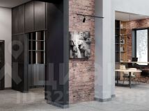 Единая дизайн-концепция продолжается в лобби дома. Сочетание тёплого кирпича с холодным металлом и стеклом создаёт харизматичное, брутальное настроение интерьера парадной группы. Чёткость вертикальных объёмов смягчается округлыми формами стойки ресепшн и декоративных куртин, а большие витражные окна создают иллюзию бесконечности пространства.