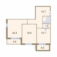 Комфортная для проживания планировка: удобная просторная кухня 12,7 кв.м. с выходом на остеклённый балкон 4,6 кв.м., две изолированные комнаты правильной формы 18,6 кв.м. и 20,4 кв.м. с выходом на лоджию 4,6 кв.м.; санузел раздельный 2кв.м. + 3кв.м.; просторный холл 15,7 кв.м.