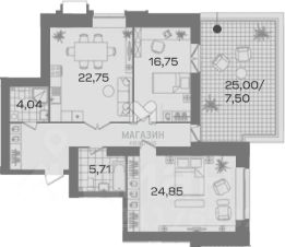 1. Обе жилые комнаты просторные (24.85 и 16,75 кв.м.)-не будет проблем с нехваткой пространства.