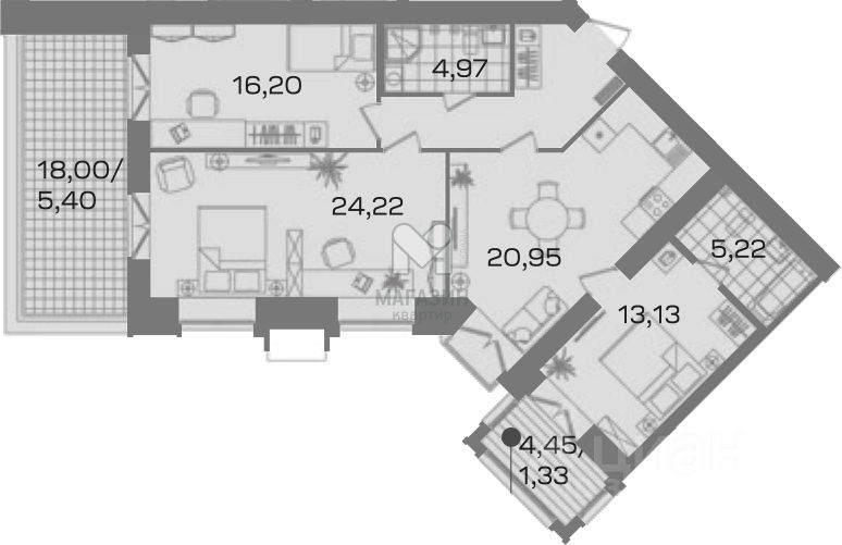 3. Кухня-гостиная в 20,95 кв.м.-есть место как для полноценной кухонной зоной, так и зоной отдыха