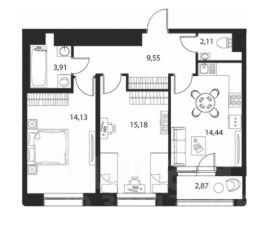 Планировка просторная и удобная: вместительная прихожая с местом для размещения гардеробного шкафа, две спальни, одна из которых — мастер-спальня с собственным санузлом, кухня-гостиная с выходом на лоджию. Высота потолков в квартире — 3,17 м!