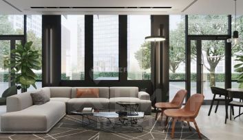 Апарт-отель высотой 24 этажа с просторным дизайнерским лобби, ресепшн и круглосуточной охраной.