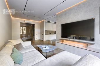 В квартире абсолютно новый ремонт по дизайн-проекту, в отделке использованы дорогостоящие натуральные материалы - мрамор, гранит, шпон. Встроенная техника- варочная панель, духовой шкаф, микроволновая печь, посудомоечная машина, винный шкаф - марки Kuppersbush, два больших блока холодильной и морозильной камер LIEBHER, вытяжка Elica, сантехника Villeroy boch, Hansgrohe, стиральная и сушильная машины Asco, кондиционеры Mitsubishi. Так же в квартире предусмотрена система вентиляции. Мебель европейских брендов, электрокарнизы, возможность управления опциями квартиры с телефона и планшета.