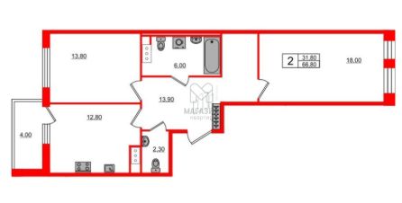 • Комнаты 18 и 13,8 м²: обустройте спальню под себя; есть место под детскую/кабинет