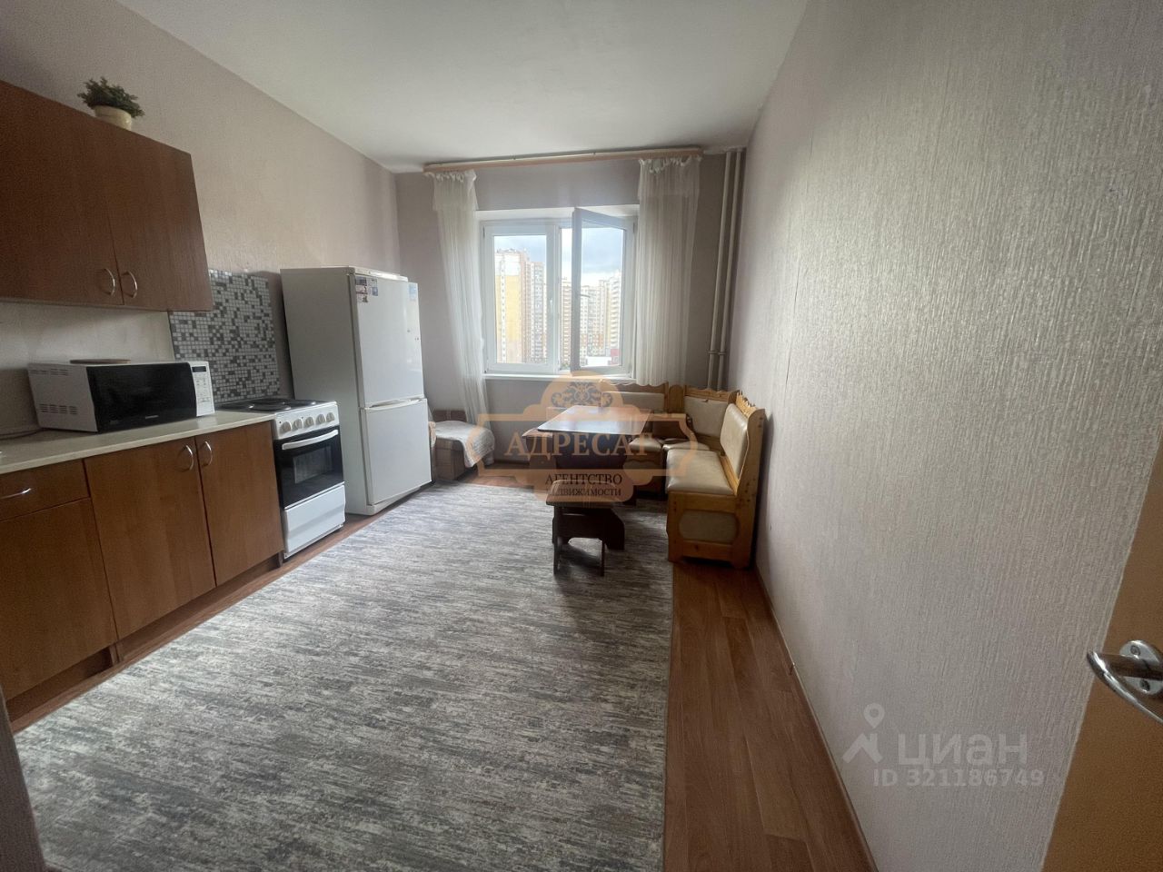Большая, светлая лоджия 5,0 м2, окна выходят во двор.