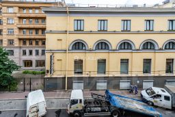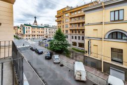 Окна: выходят во двор (тихо, уютно, зелёно) и на Дегтярную улицу (живая городская атмосфера, вид на старинные фасады)