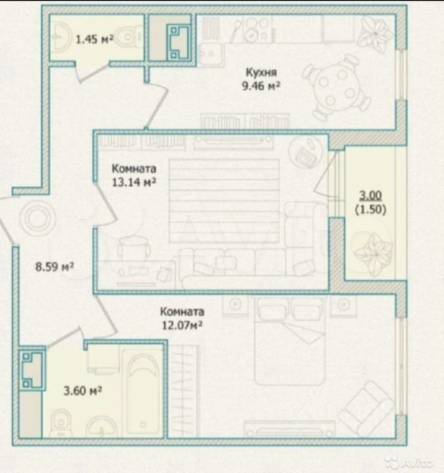 В квартиру можно сразу заехать и жить без дополнительных вложений. Функциональная планировка включает две изолированные комнаты и кухню. Два отдельных санузла обеспечивают дополнительный комфорт для семьи. В квартире также есть лоджия, где можно отдохнуть и насладиться свежим воздухом.