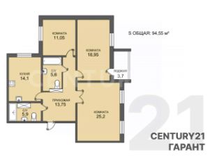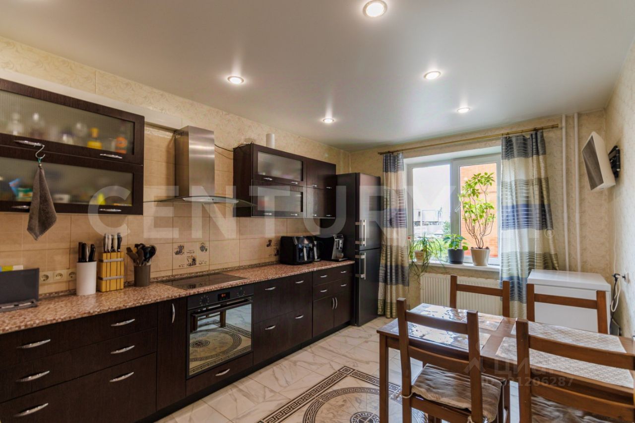 В квартире выполнен качественный современный ремонт. У квартиры эргономичная планировка. Окна выходят на две стороны. Большой, просторный коридор с пространством под большой шкаф. Два больших совмещенных санузла. Все комнаты изолированные, в одной из которых есть балкон. Вместительная кухня-столовая.