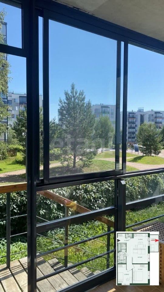 Данная квартира была выбрана собственником еще на стадии проекта, даже когда не было котлована. У нее самые лучшие виды из окон на внутренний двор с берёзами и соснами и на детскую площадку.