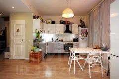 2 просторных спальни. Большая просторная гостиная, объединённая с кухней, имеет выход на остекленный балкон, а с балкона можно выйти на террасу, где в хорошую погоду можно устроить пикник, или просто насладиться чистым и свежим воздухом, умиротворенно качаясь на качелях.