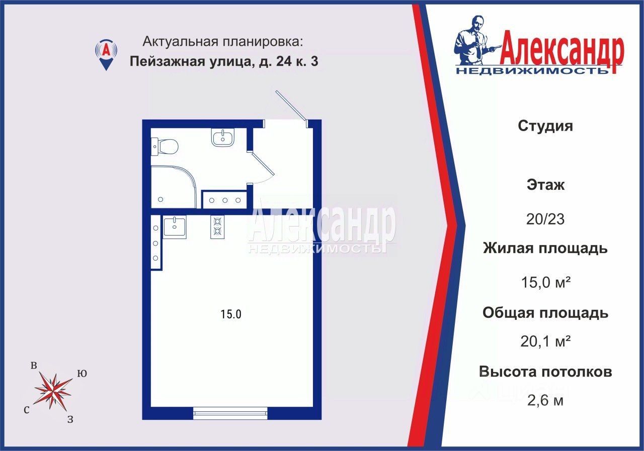 1704316 В прямой продаже светлая, уютная квартира-студия в ЖК "Цветной город" . Квартира находится на 20 этаже, что дает прекрасный вид из окна. Площадь студии 20,1 кв.м. В квартире сделана качественная отделка от ЛРС. В студии никто не жил, есть возможность все сделать под свой вкус.