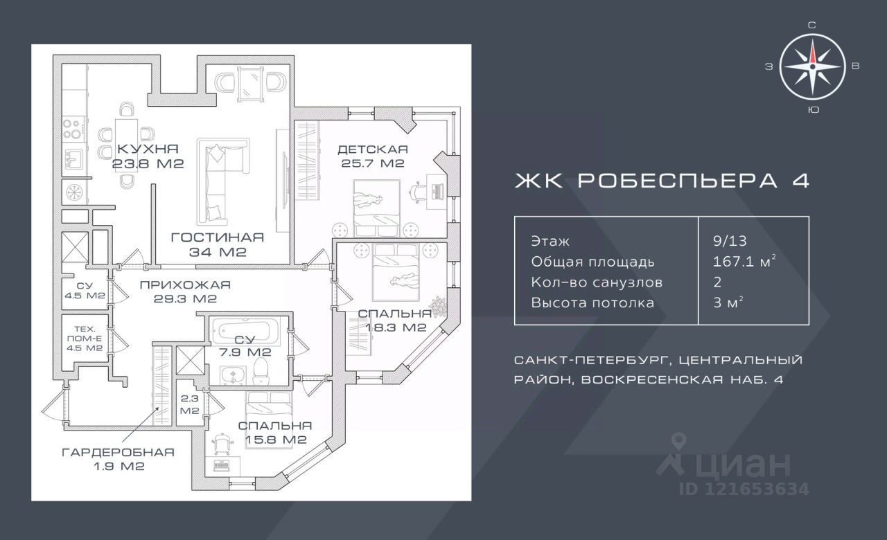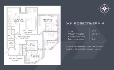 Простор и комфорт — 167,4 кв.м. изысканного пространства с высокими потолками 3 м, где каждый метр работает на ваше удобство.