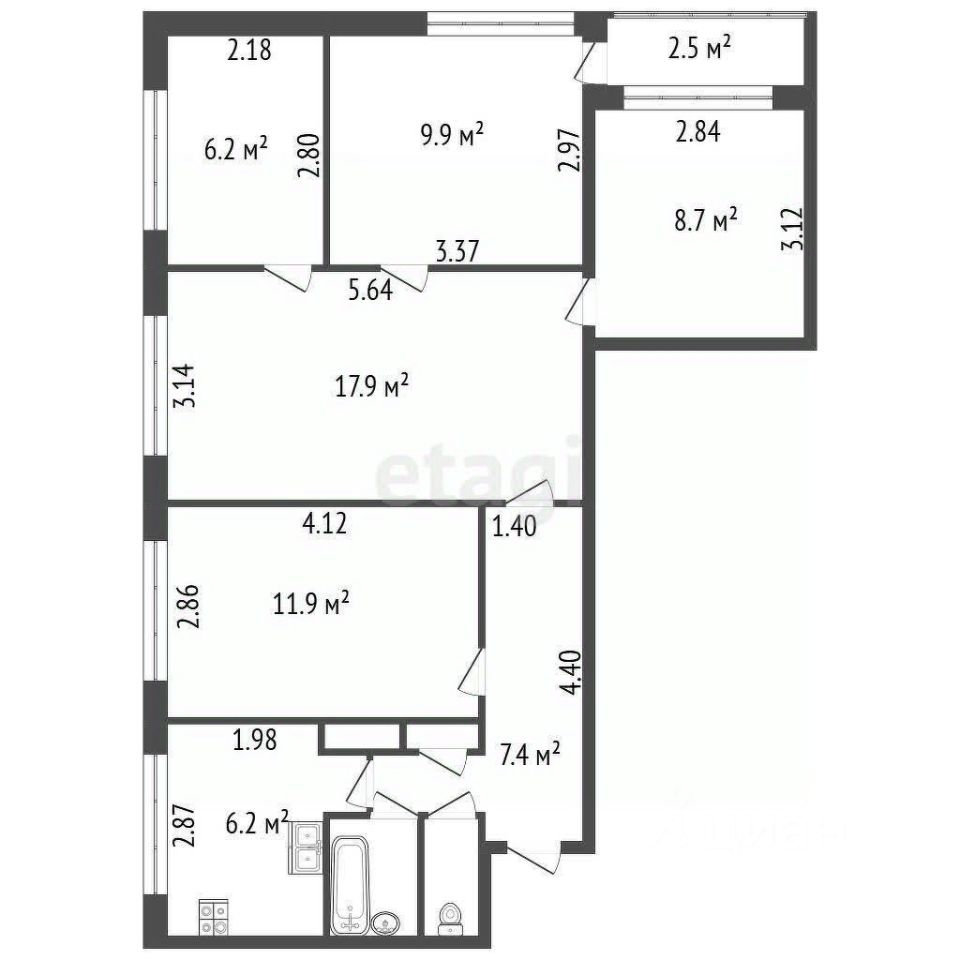• Кухня: 6,2 м² — идеально подойдет для создания кулинарных шедевров.