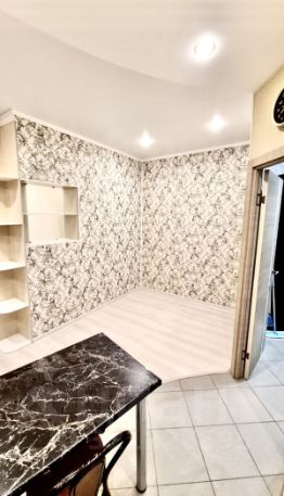 Квартира очень светлая с огромной 4-х метровой, застеклённой лоджией. Комната разделена на две части, одна из которых используется как спальня, а другая как кухня-гостиная. Общая площадь квартиры 43,2 ка.метра, жилая комната —30 кв.м. Санузел большой, совмещенный. Квартира продается с бытовой техникой (стиральная машина-автомат, двухкамерный холодильник, СВЧ печь, электрическая плита с духовым шкафом, мощная вытяжка). В ванной и в зоне кухни установлена система теплый пол.