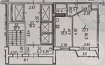 Просторная жилая зона 22 м², идеально подходящая для реализации ваших дизайнерских идей.
