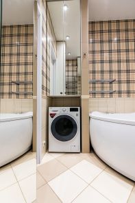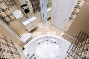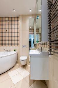 - большой совмещенный санузел (7 м.кв.) в стиле Burberry, оформленный по принципу мастер-спальни (вход из комнаты);