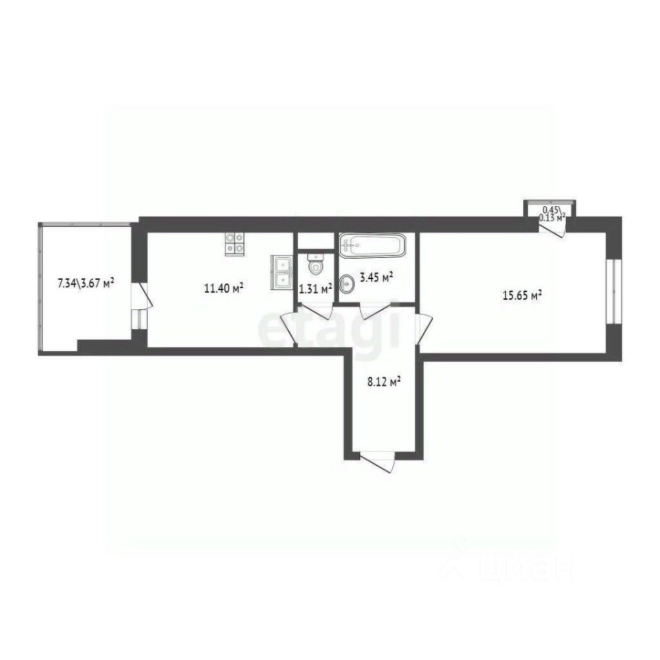 Общая площадь объекта составляет 39,3 кв.м, а ключевым преимуществом является просторная изолированная лоджия 7.34 кв.м, которая функционально расширяет жилое пространство и может быть адаптирована под зону отдыха или кабинет.