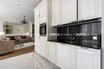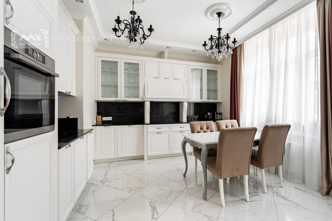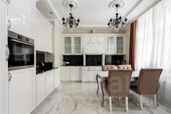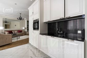Ремонт выполнен в современной интерпретации классического стиля в светлых тонах. Действительно большая кухня-гостиная включает в себя пространство для отдыха и столовую зону. Кухня выполнена на заказ, техника премиальных европейских брендов.