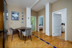 На этаже всего три квартиры, интеллигентные соседи. Потрясающая планировка квартиры и высокие потолки (3,05 м) подчеркивают уникальность этого предложения. Просторная кухня-гостиная (48,1 м) зонирована на обеденную зону и пространство для отдыха. Две комнаты имеют выход на большой балкон, у одной из комнат панорамное остекление повышенного класса энергоэффективности. Два санузла с системой подогрева пола. Установлен кондиционер.