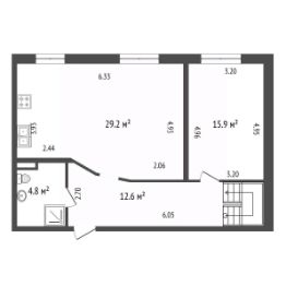 •Кухня-гостиная 29,2 кв.м. — открытая, светлая зона для общения и отдыха;