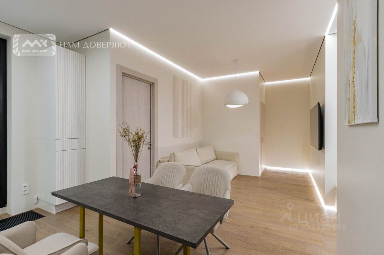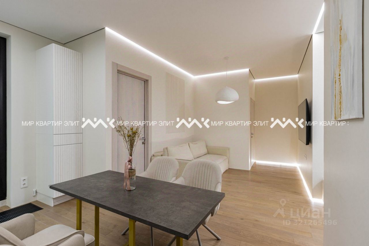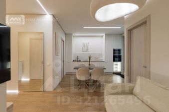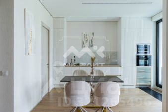 Просторная гостиная с удобной кухней , создает теплую и уютную атмосферу для общения с близкими. Кухня оборудована высококачественной встраиваемой техникой (духовой шкаф, посудомоечная машина, духовой шкаф, холодильник) Miele (Германия), а также элегантными фасадами и функциональной мебелью, что делает процесс приготовления пищи приятным и легким.