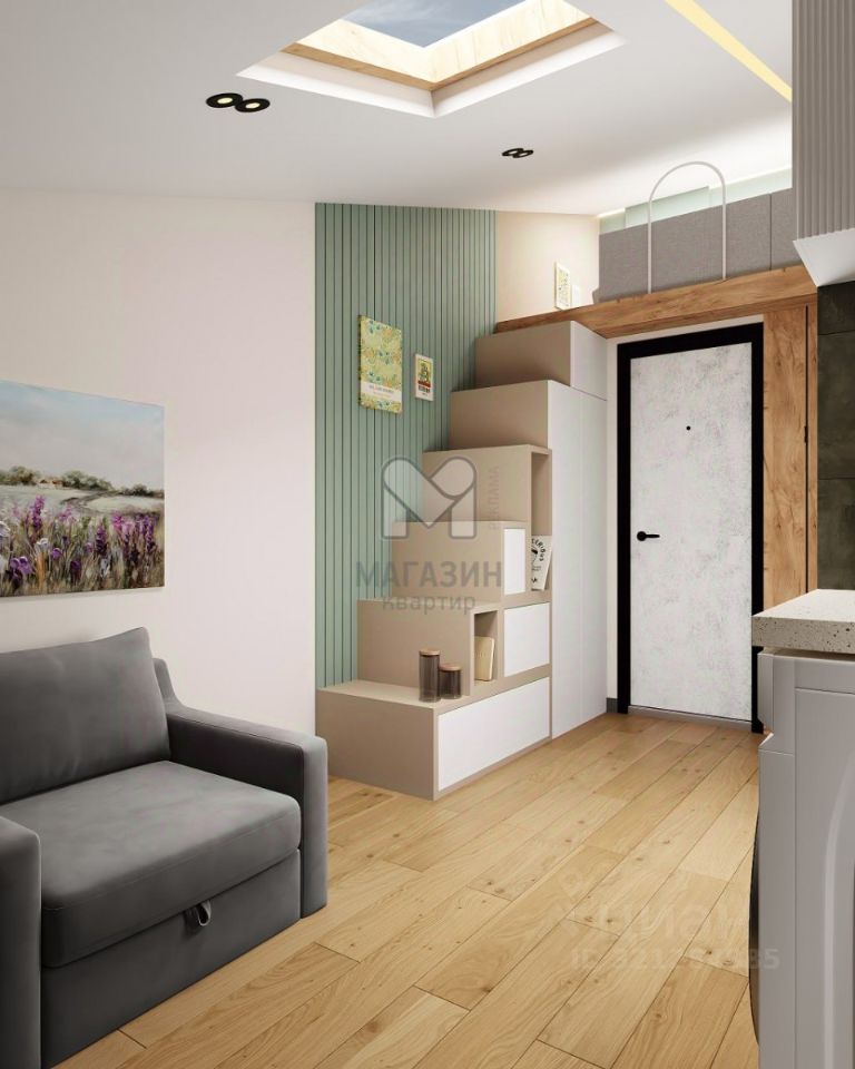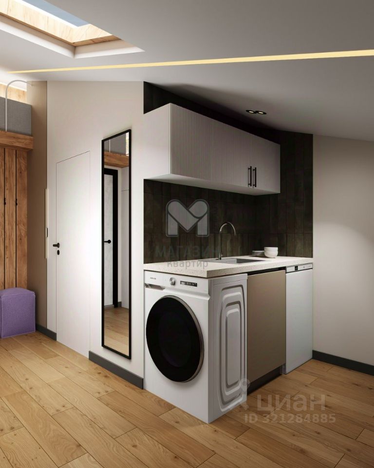 Совмещенный санузел и компактная кухня площадью 3 м² делают пространство максимально функциональным и комфортным для проживания.